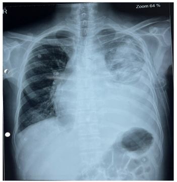 Microscopic examination of mass – Caseous necrosis, inflammatory infiltrates suggestive of tuberculoma.