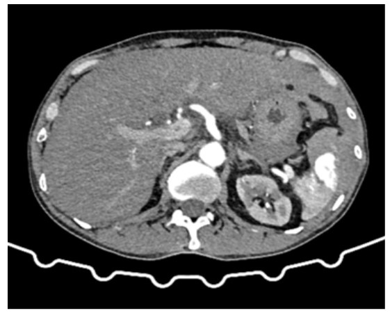 Among blunt abdominal trauma spleen is the most commonly injured organ. Injury to the spleen may be suspected on the basis of the patient’s mechanism of injury and physical examination findings, but definitive diagnosis generally requires further diagnostic testing. A visual inspection for signs of external trauma such as abrasions, lacerations, contusions, and classic seatbelt sign on the abdomen is beneficial [1]. The lack of external visual findings does not exclude the possibility of intra-abdominal pathology, as up to 20% of patients with such injuries may not exhibit clinically apparent symptoms [1]. Spontaneous splenic rupture or pathologic splenic rupture can occur after negligible trauma or insignificant events [2]. Abdominal CECT is the gold standard to determine the grades of injury in hemodynamically stable patients. An intraparenchymal or subcapsular hematoma is also easier to identify and sometimes associated with delayed splenic rupture [5]. American Association for the Surgery of Trauma (AAST) splenic injury scale, is the most widely used grading system for splenic injury [6]. A positive FAST scan is an absolute indication for emergency exploratory laparotomy for hemodynamically unstable patients. However, a negative FAST scan cannot reliably exclude intraabdominal hemorrhage [7].